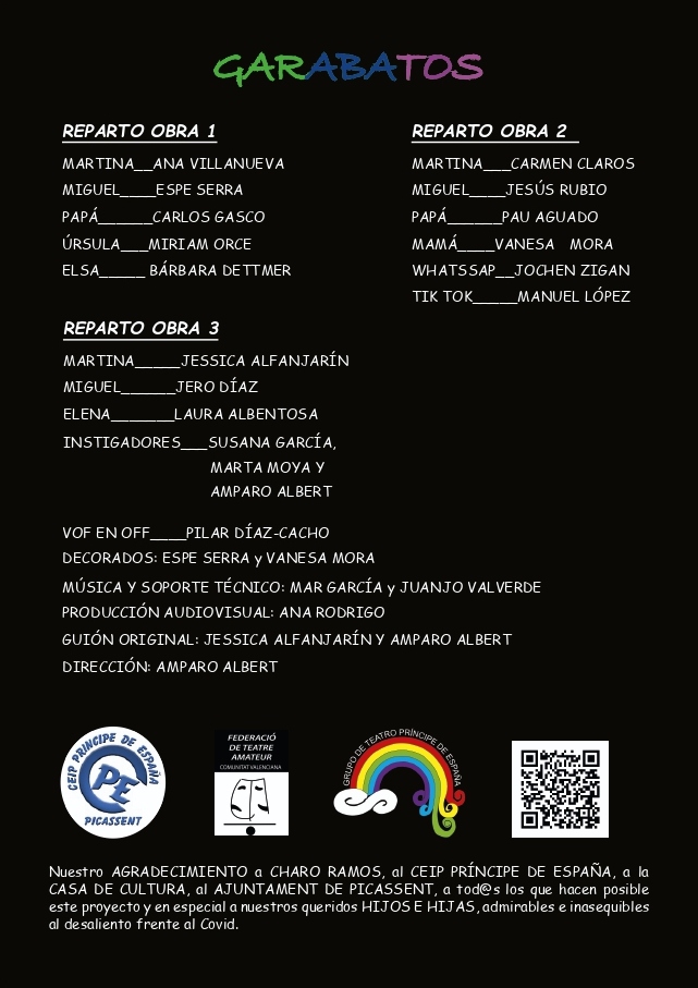 Obra original de Jessica Alfanjarin y Amparo Albert, inspirada en su maternidad, y diseñada para poder ser ensayada y representada en plena pandemia Covid-19 pese a las limitaciones existentes de reunión de personas. Se compone de una trilogía breve a modo de caleidoscopio de la vida familiar en la que podemos reconocer las diferentes etapas vitales de los hijos en la sociedad actual pero con un mensaje universal.
